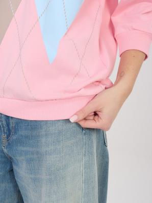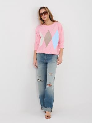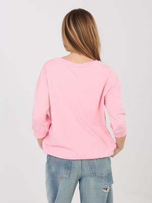 Pastelově růžová bavlněná halenka s 3/4 rukávy s geometrickým vzorem