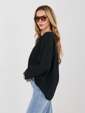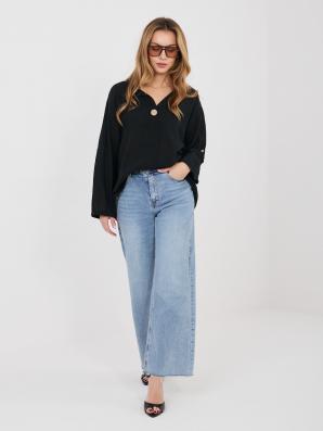 Volná letní halenka s dlouhým rukávem a s ozdobným knoflíkem v černé barvě