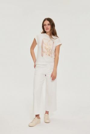 Tato halenka ze 100% BAVLNY v béžových odstínech je ideální pro ženy, které si cení pohodlí a stylu při každodenním nošení. Je vyrobena z měkké bavlny, která poskytuje prodyšnost a pohodlí, zatímco decentní potisk jí dodává moderní nádech. Volný střih s kulatým výstřihem a zakončenými manžetami decentně zdůrazňuje ženský vzhled a zároveň zůstává neuvěřitelně praktická. Hladká tkanina dělá z této halenky perfektní doplněk k všestranným outfitům. Je ideální do kanceláře, na schůzky s přáteli nebo na procházky po městě. V kombinaci s klasickými džínami vytváří ležérní vzhled, zatímco se sukní nebo sakem získává elegantnější nádech. Neutrální barvy umožňují snadné kombinování s dalšími kousky šatníku a zdůrazňují tak každodenní, ale zároveň stylový charakter kousku. Ideální pro ženy, které hledají pohodlí a módní design v jednom.
