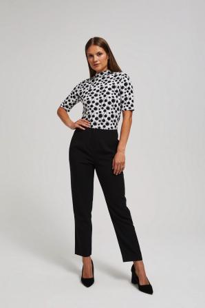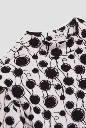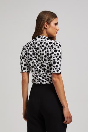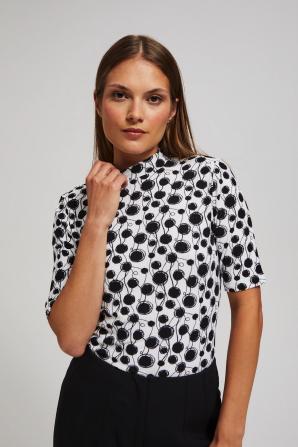 Bílá halenka je perfektní volbou pro každou ženu, která ocení pohodlí a módní vzhled. Celoplošný potisk v černé barvě. Vyrobeno z vysoce kvalitního polyesteru, zaručuje odolnost a perfektní padnutí. Krátké rukávy a rolák dělají z halenky perfektní jak pro teplé letní dny, tak pro chladnější večery.