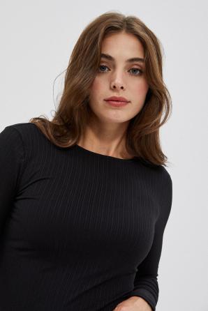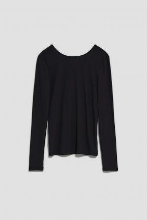 Velmi výrazný zadní díl halenky s hlubokým výstřihem na zádech.