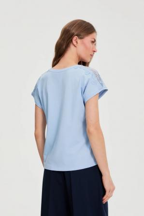 Modrá halenka s krajkou na rukávech