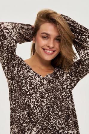 95% POLYESTER, 5% ELASTAN. Tato halenka má volný střih, který umožňuje volnost pohybu, a dlouhé rukávy jsou ideální pro chladnější i teplejší dny. Výstřih do V opticky prodlužuje krk a zdůrazňuje silné stránky postavy. Tato halenka je ideální pro každodenní schůzky, práci nebo neformální výlety s přáteli. Perfektně se hodí k džínům, teplákům, klasickým cigaretovým kalhotám nebo pouzdrové sukni. Zkombinujte ji s módními teniskami, kotníkovými botami nebo balerínkami pro stylový vzhled pro každou příležitost.