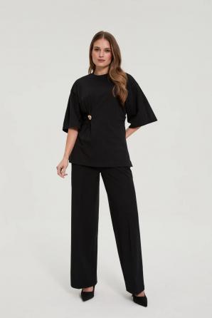 Bavlněná halenka s ozdobným knoflíkem, černá