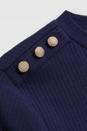 Tmavě modrá bavlněná halenka s dlouhým rukávem