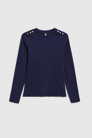 Tmavě modrá bavlněná halenka s dlouhým rukávem