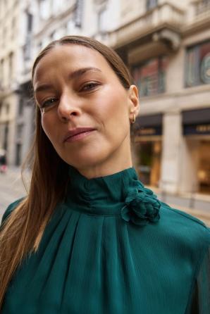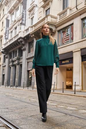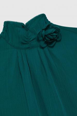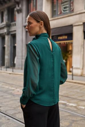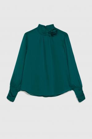 Halenka dámská s látkovou aplikací v tmavě zelené barvě