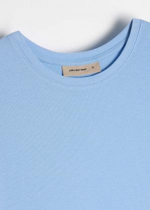 Dámské přiléhavé tričko s krátkým rukávem - přiléhavý střih, - krátké rukávy, - žebrovaný úplet, - dostupné v modré barvě.