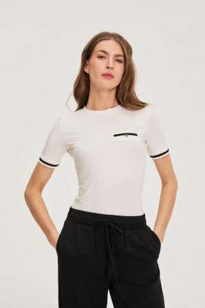 95% BAVLNA, 5% ELASTAN Tato krémová halenka je ideální pro ženy, které si cení lehkosti a každodenního pohodlí. Měkká bavlna zajišťuje pohodlné nošení. Přiléhavý střih lichotí postavě a zároveň zaručuje volnost pohybu. Hladký, ecru povrch halenky dodává každému outfitu svěží a nadčasový nádech. Jednoduše ji zkombinujte s klasickými džínami, elegantním sakem nebo lehkou sukní pro ležérní nebo decentně elegantní vzhled. Díky všestrannosti se tento kousek snadno hodí k různým příležitostem a minimalistický design umožňuje nepřeberné množství inspirativních kombinací.