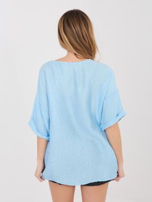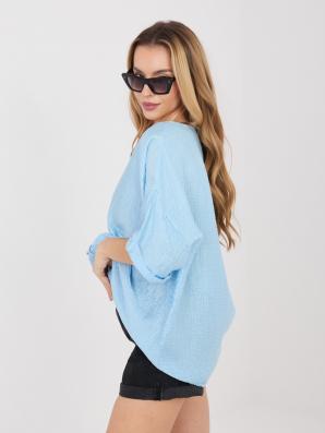 Volná letní halenka s krátkým rukávem a s knoflíky ve světle modré barvě