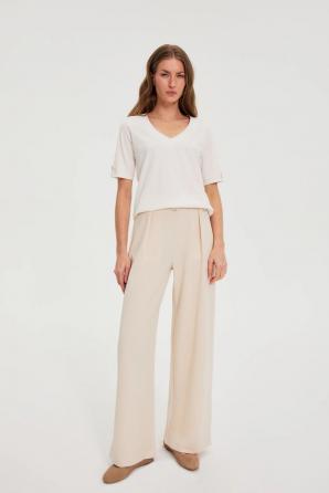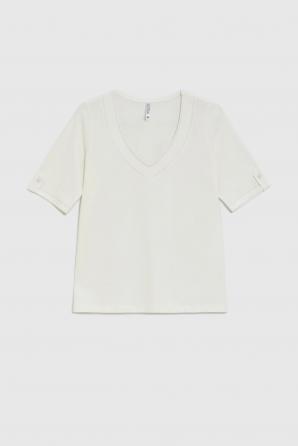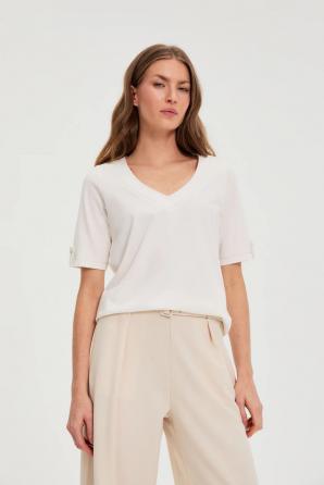 Tato bílá halenka s výstřihem do V ze 100% BAVLNY je ideální pro ženy, které si cení decentní elegance a každodenního pohodlí. Její jednoduchý střih a ohrnuté rukávy jí dodávají lehký nádech a svěží a nadčasový vzhled. Jemná a vzdušná látka zaručuje pohodlí i v těch nejaktivnějších dnech, zatímco klasický bílý odstín umožňuje všestranné stylování. Tato halenka je perfektním základem pro každodenní outfity – ideální do práce, na procházku nebo na setkání s přáteli. Můžete ji nosit s vašimi oblíbenými džínami pro ležérnější vzhled nebo ji zkombinovat se sukní a sakem pro elegantnější vzhled. Stylová, ženská a všestranná, dokonale podtrhuje váš individuální styl a zároveň je v souladu s aktuálními módními trendy.