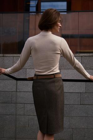 61% POLYESTER, 25% VISKÓZA, 10% POLYAMID, 4% ELASTAN Tato béžová halenka zaujme svým minimalistickým charakterem a decentní elegancí. Hladký materiál, přiléhavý střih a dlouhé rukávy zdůrazňují siluetu a zároveň zajišťují pohodlí a volnost pohybu. Imitace roláku dodává halence stylový vzhled a chrání před chladem. Materiál vyrobený z měkkého a odolného polyesteru zaručuje snadnou údržbu a nemačkavost. Ideální volba pro obchodní schůzky, rodinné oslavy nebo každodenní pracovní outfity. Krásně se hodí ke klasickým látkovým kalhotám, pouzdrové sukni nebo džínům v odstínech tmavě modré nebo černé. Perfektní základ pod sako, kardigan nebo elegantní kabát.