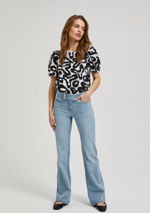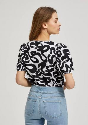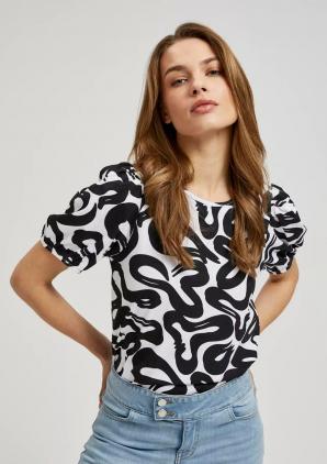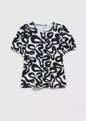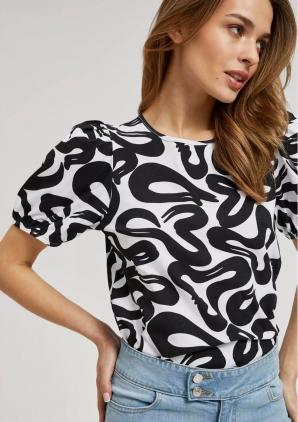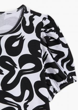 ČERNOBÍLÁ HALENKA S GEOMETRICKÝM VZOREM A NABÍRANÝMI RUKÁVY
