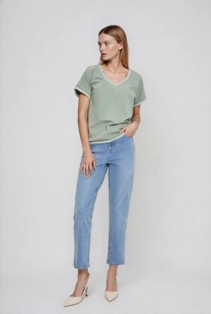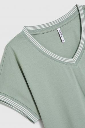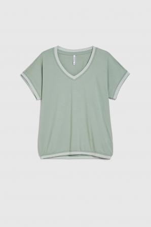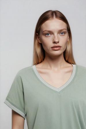 95% BAVLNA, 5% ELASTAN Tato halenka v olivové s výstřihem do V je ideální pro ženy, které si cení pohodlí a přirozeného stylu. Jednoduchý střih decentně lichotí siluetě. Měkká směs zajišťuje celodenní pohodlí a umožňuje pokožce dýchat, takže její nošení je čirým potěšením. Tato halenka je ideální pro rušný den v práci, schůzku s přáteli nebo procházku po městě. Perfektně se hodí k džínům a teniskám pro každodenní nošení, skvěle vypadá také se sukní nebo pod sakem pro ležérní i elegantní nošení. Tato halenka je všestranným základním kouskem šatníku, který vám umožní vytvořit módní, ženské a pohodlné outfity pro každou příležitost.