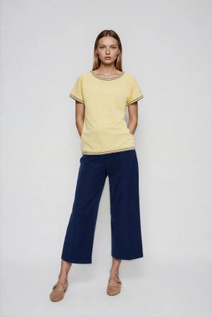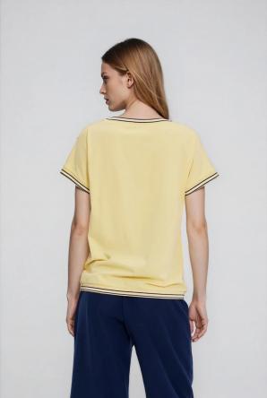 Žlutá halenka s ozdobným lemováním