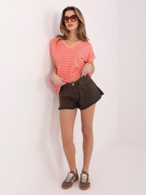 Bavlněné tričko s úzkým proužkem v barvách: broskvová a červená