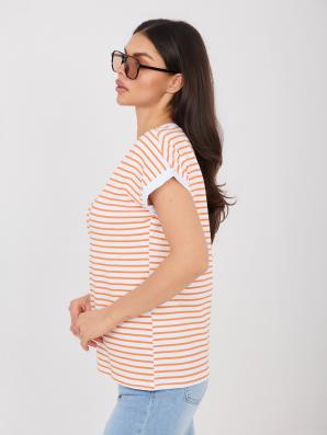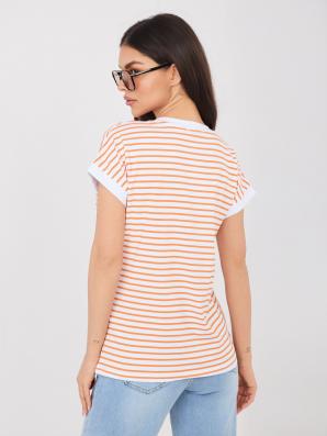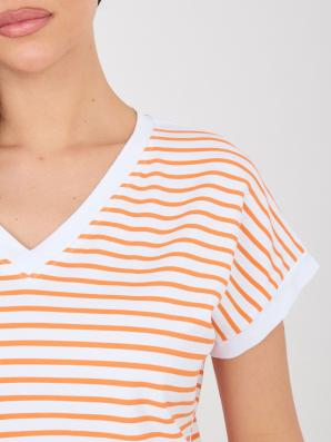 Bavlněné tričko s úzkým proužkem v barvách: bílá a oranžová