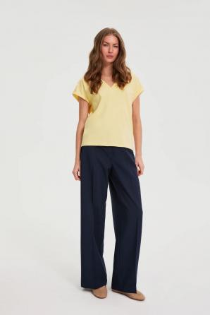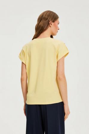95% BAVLNA, 5% ELASTAN Tato zářivě žlutá halenka je ideální pro ženy, které si cení pohodlí a volnosti pohybu a zároveň vyznávají decentní styl. Hladká, nevzorovaná a vyrobená z prodyšné bavlny je ideální pro každou příležitost a zajistí pohodlí i během těch nejaktivnějších dnů. Volný střih s výstřihem do V a praktickým ramenním popruhem dodává vzhledu nádech lehkosti a modernosti a zdůrazňuje ženskou povahu. Tato halenka je ideální do práce, na procházky po městě, na setkání s přáteli nebo na víkendové pobyty. Perfektně se hodí ke klasickým džínům, elegantním kalhotám nebo lehkým sukním. Skvěle se hodí k saku nebo ležérnímu kardiganu a vytváří tak stylový, ležérní vzhled s nádechem elegance. Je to všestranný základní kousek šatníku, který dodá každodenním outfitům svěží a přirozený nádech.
