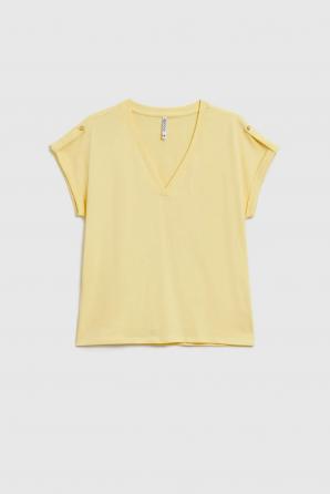 95% BAVLNA, 5% ELASTAN Tato zářivě žlutá halenka je ideální pro ženy, které si cení pohodlí a volnosti pohybu a zároveň vyznávají decentní styl. Hladká, nevzorovaná a vyrobená z prodyšné bavlny je ideální pro každou příležitost a zajistí pohodlí i během těch nejaktivnějších dnů. Volný střih s výstřihem do V a praktickým ramenním popruhem dodává vzhledu nádech lehkosti a modernosti a zdůrazňuje ženskou povahu. Tato halenka je ideální do práce, na procházky po městě, na setkání s přáteli nebo na víkendové pobyty. Perfektně se hodí ke klasickým džínům, elegantním kalhotám nebo lehkým sukním. Skvěle se hodí k saku nebo ležérnímu kardiganu a vytváří tak stylový, ležérní vzhled s nádechem elegance. Je to všestranný základní kousek šatníku, který dodá každodenním outfitům svěží a přirozený nádech.
