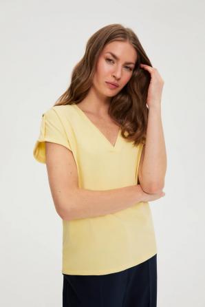 95% BAVLNA, 5% ELASTAN Tato zářivě žlutá halenka je ideální pro ženy, které si cení pohodlí a volnosti pohybu a zároveň vyznávají decentní styl. Hladká, nevzorovaná a vyrobená z prodyšné bavlny je ideální pro každou příležitost a zajistí pohodlí i během těch nejaktivnějších dnů. Volný střih s výstřihem do V a praktickým ramenním popruhem dodává vzhledu nádech lehkosti a modernosti a zdůrazňuje ženskou povahu. Tato halenka je ideální do práce, na procházky po městě, na setkání s přáteli nebo na víkendové pobyty. Perfektně se hodí ke klasickým džínům, elegantním kalhotám nebo lehkým sukním. Skvěle se hodí k saku nebo ležérnímu kardiganu a vytváří tak stylový, ležérní vzhled s nádechem elegance. Je to všestranný základní kousek šatníku, který dodá každodenním outfitům svěží a přirozený nádech.