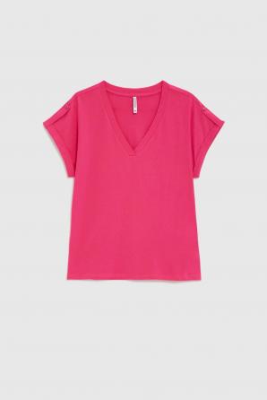 Bavlněné tričko fuchsiové barvy