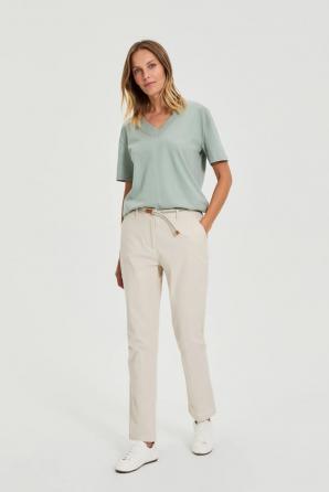 100% BAVLNA Tato klasická halenka v olivové barvě je nezbytností v šatníku každé ženy. Měkká, příjemná bavlna na dotek zajišťuje celodenní pohodlí, zatímco volný střih a výstřih do V dodávají lehkost a lichotí ženské siluetě. Jednoduchý a hladký střih ji činí univerzální k různým outfitům, zatímco krátké rukávy zaručují volnost pohybu a jsou ideální pro každé roční období. Je to perfektní volba do práce, na kávu s kamarádkou nebo na víkendové procházky po městě. Vypadá skvěle s džínami, látkovými kalhotami, pod sakem nebo v kombinaci se sukní – pro elegantní i ležérní outfity. Díky svému všestrannému charakteru a klasickému stylu je ideální pro každou příležitost, pro ženy, které si cení pohodlí a přirozeného, ??ležérního vzhledu.