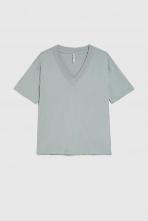 100% BAVLNA Tato klasická halenka v olivové barvě je nezbytností v šatníku každé ženy. Měkká, příjemná bavlna na dotek zajišťuje celodenní pohodlí, zatímco volný střih a výstřih do V dodávají lehkost a lichotí ženské siluetě. Jednoduchý a hladký střih ji činí univerzální k různým outfitům, zatímco krátké rukávy zaručují volnost pohybu a jsou ideální pro každé roční období. Je to perfektní volba do práce, na kávu s kamarádkou nebo na víkendové procházky po městě. Vypadá skvěle s džínami, látkovými kalhotami, pod sakem nebo v kombinaci se sukní – pro elegantní i ležérní outfity. Díky svému všestrannému charakteru a klasickému stylu je ideální pro každou příležitost, pro ženy, které si cení pohodlí a přirozeného, ??ležérního vzhledu.