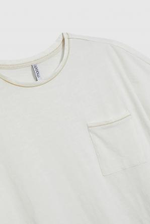 100% BAVLNA Krémová halenka v ecru odstínu je perfektní volbou pro milovnice minimalismu a elegance. Volný, oversized střih s spuštěnými rameny zajišťuje volnost pohybu a pohodlí po celý den. Kulatý výstřih krásně zvýrazňuje krk a praktická kapsa na hrudi zdůrazňuje moderní styl a funkčnost. Přírodní bavlna dělá halenku měkkou, vzdušnou a příjemnou na pokožku. Je ideální pro každodenní procházky, setkání s přáteli, ale i pro ležérní kancelářský styling. Hodí se k lehkým džínům, lněným kalhotám, sukním a kraťasům a vytváří tak módní sety na jaro a léto.