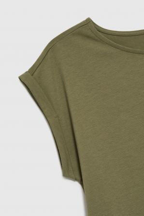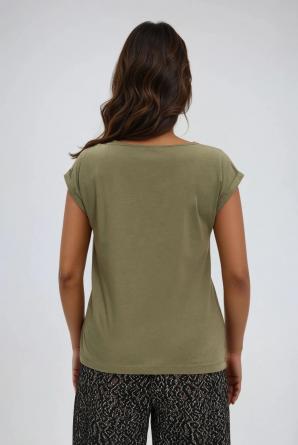 95% BAVLNA, 5% ELASTAN Tato dámská halenka v módní olivově zelené barvě je ideální pro ženy, které si cení pohodlí a nadčasové elegance. Její hladká, nevzorovaná struktura a volný střih se spuštěnými rameny zajišťují volnost pohybu a celodenní pohodlí. Lodičkový výstřih decentně zdůrazňuje dekolt a dodává vzhledu nádech lehkosti a ženského šarmu. Halenka je vyrobena z měkké, přírodní bavlny, která umožňuje pokožce dýchat a je pohodlná na nošení i v teplých dnech. Perfektní volba pro každodenní výlety, schůzky s přáteli i neformální schůzky v práci.