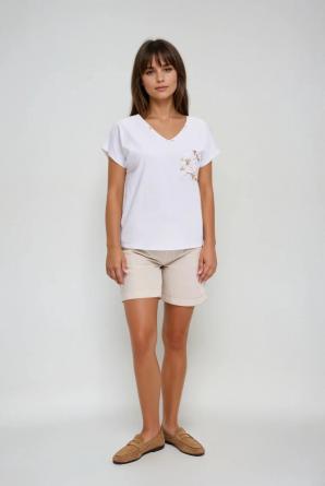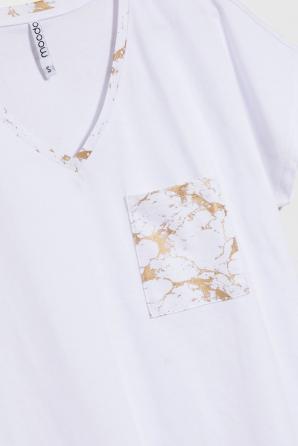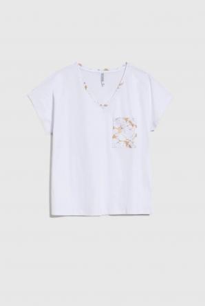 Bavlněné tričko s ozdobnou kapsou, bílé