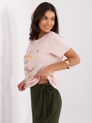 Dámské tričko s květinovou výšivkou ve světle růžové barvě