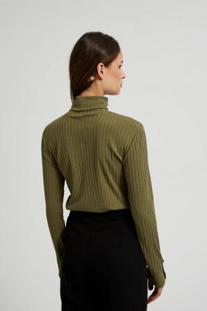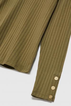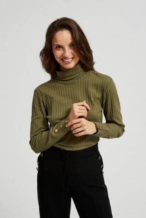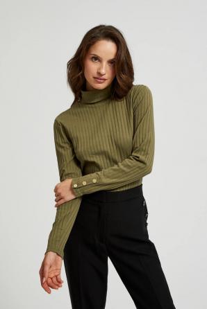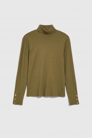 Žebrovaný rolák s ozdobnými knoflíky na rukávech, olivový