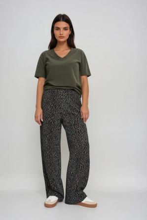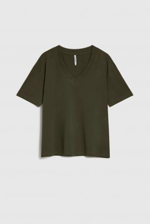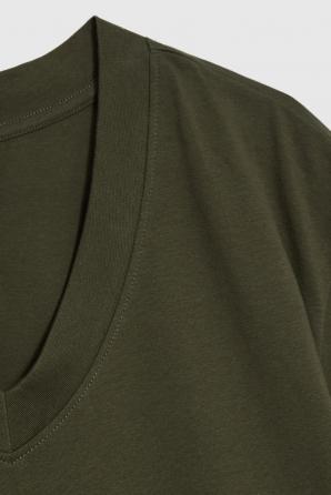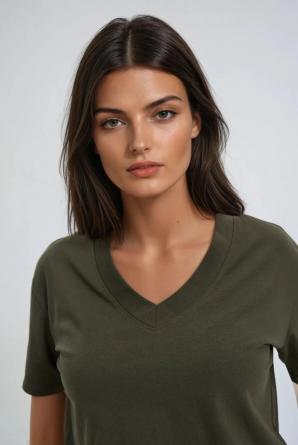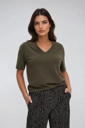 95% BAVLNA, 5% ELASTAN Tato olivově zelená halenka zaujme svou jednoduchostí a všestranností. Hladká textura a volný střih zaručují volnost pohybu a celodenní pohodlí. Výstřih do V decentně zdůrazňuje krk a krátké rukávy činí z tohoto kousku ideální volbu pro teplejší dny. Přírodní bavlna zajišťuje prodyšnost a příjemný pocit na pokožce. Je to perfektní volba pro každodenní nošení, ať už do práce nebo na setkání s přáteli. Perfektně se hodí k džínům, midi sukni nebo kraťasům. Hodí se také dobře jako základní vrstva pod sako nebo kardigan a vytváří tak pohodlné a stylové ležérní outfity.