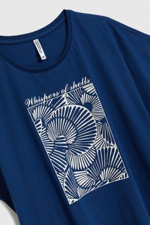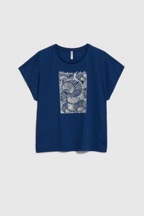 Bavlněná halenka s potiskem, tmavě modrá