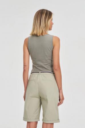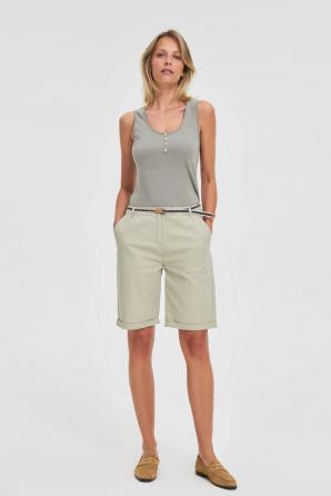 95% BAVLNA, 5% ELASTAN Dámská vrchní halenka v olivové barvě je volbou, která v sobě spojuje styl a pohodlí. Klasický střih s ramínky a výstřihem do V krásně zdůrazňuje siluetu a dodává jemnou eleganci. Ozdobné knoflíky dodávají celému výrobku módní charakter a přírodní bavlna zajišťuje prodyšnost a pohodlí při nošení i v horkých dnech. Ideální na letní procházky, setkání s přáteli nebo neformální výlety do města. Perfektně se hodí k džínám, kraťasům a sukním různých délek. Bude se skvěle hodit pod bundu a vytvoří stylový a ženský outfit pro každodenní nošení.