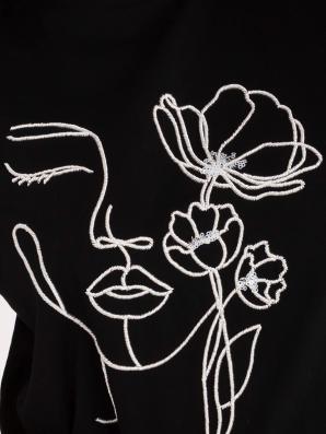 Bavlněné tričko s výšivkou v černé barvě