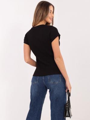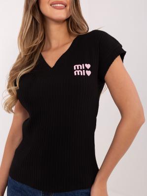 Dámské tričko s výstřihem do V, žebrovaný materiál, výšivka, UNIVERZÁLNÍ VELIKOST