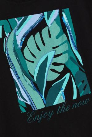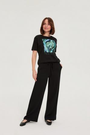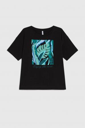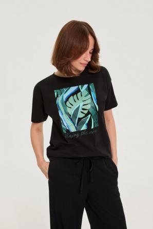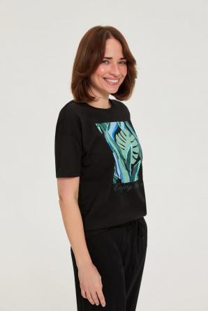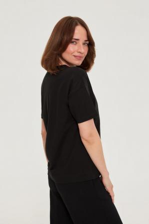 Tato halenka ze 100% BAVLNY je ideální pro ženy, které si cení pohodlí a rády se cítí v každé situaci v pohodě. Hladká černá látka s decentním potiskem dokonale splňuje moderní trendy, zatímco měkká bavlna zajišťuje celodenní pohodlí. Krátké rukávy a volnější střih umožňují naprostou volnost pohybu, zatímco kulatý výstřih decentně zdůrazňuje ženský charakter střihu. Tato halenka vytváří pocit lehkosti a přirozeného stylu, bez ohledu na vaše denní plány. Je ideální do práce, na procházku nebo na setkání s přáteli. V kombinaci s úzkými džínami vytváří ležérní vzhled a se sukní a sakem působí elegantněji. Je to všestranná volba pro každodenní styling, díky které se budete cítit pohodlně a módně v každé situaci. Elegantní černá barva se snadno kombinuje s vašimi oblíbenými doplňky a zdůrazňuje váš individuální styl.