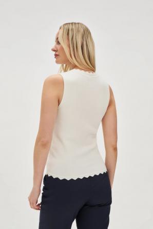 70% VISKÓZA 30% POLYAMID Svrchní halenka krémové barvy, vyrobená z vysoce kvalitní viskózy. Model se strukturovaným vzorem, ramínky a klasickým výstřihem do V. Ozdobný výstřih dodává eleganci a jedinečný charakter. Ideální na večery a společenské akce. Skvěle se hodí k džínům, tužkové sukni nebo elegantním kalhotám. Hodí se jak ke každodennímu stylu, tak k formálnějším příležitostem.