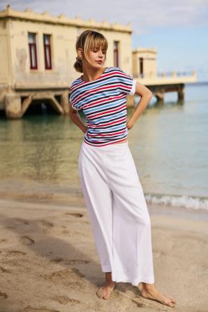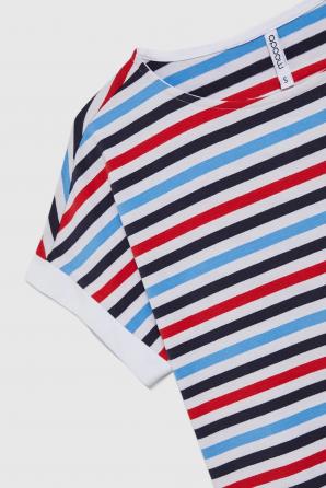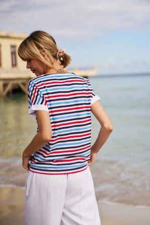 95% BAVLNA, 5% ELASTAN Pruhovaná halenka je kombinací pohodlí a módního designu. Volný střih umožňuje volnost pohybu a kulatý výstřih decentně zvýrazňuje krk. Originální potisk přitahuje pozornost a dodává stylu jedinečný charakter. Střih se spuštěnými rameny je ideální pro teplejší dny. Bavlna zaručuje měkkost a pohodlí pro každodenní nošení. Perfektní volba pro setkání s přáteli, letní procházku nebo víkendový výlet mimo město. Perfektně se hodí k džínám, kraťasům nebo midi sukni a vytváří tak lehký a ležérní vzhled. Skvělá volba pro milovníky netradičního, každodenního stylingu.
