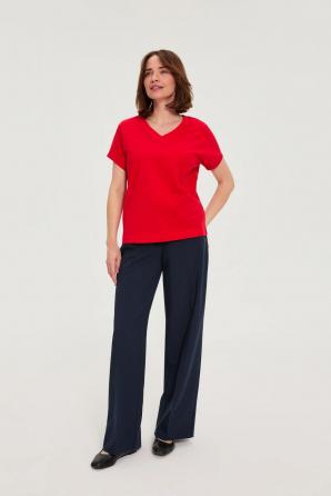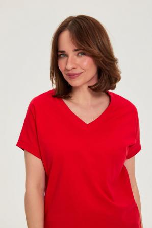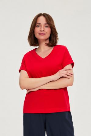 Tato červená halenka ze 100% BAVLNY je ideální pro ženy, které si cení pohodlí a volnosti pohybu. Volný střih, výstřih do V a bez rukávů zdůrazňují lehkost a ženskost tohoto stylu. Hladká a měkká bavlna příjemně obepíná pokožku, zajišťuje celodenní pohodlí a umožňuje pokožce dýchat. Jemný odstín červené dodává energii, zatímco minimalistický design umožňuje snadnou adaptaci halenky na různé styly. Je ideální pro mnoho příležitostí – hodí se jak do práce se sakem a chino kalhotami, tak na procházku s vašimi oblíbenými džínami. Je také ideální na setkání s přáteli nebo na letní večer, pokud ji jednoduše zkombinujete se sukní nebo kraťasy. Tato červená halenka je všestranným a každodenním kouskem šatníku, který kombinuje stylový vzhled s pohodlím a přirozeností.