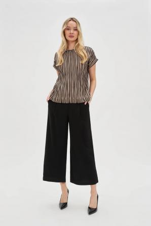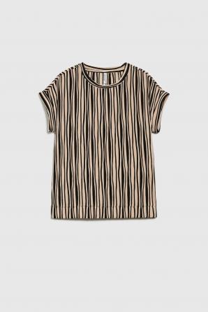 95% BAVLNA, 5% ELASTAN Béžová proužkovaná halenka, vyrobená z vysoce kvalitní bavlny. Má krátké rukávy, volný střih. Vyrobeno z bavlny. Ideální pro letní dny a neformální setkání s přáteli. Skvěle bude vypadat jak k džínům, tak k elegantní sukni.