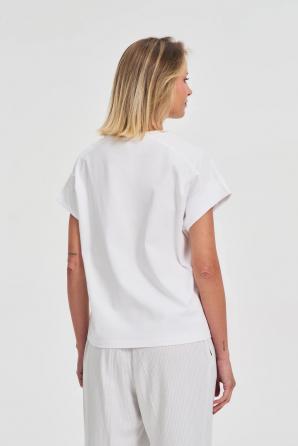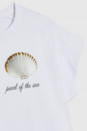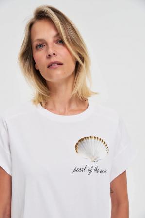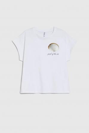 100% BAVLNA Bílé tričko s potiskem. S krátkým rukávem a kulatým výstřihem. Jednoduchý a pohodlný střih. Ideální pro letní styling.