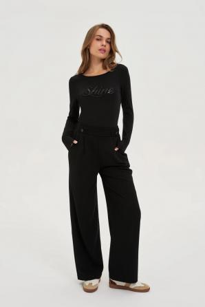 Tato černá halenka zaujme svou elegancí a jemností. Hladká textura, zvýrazněná jemnou výšivkou a ozdobnými korálky, dodá každému outfitu jedinečný nádech. Přiléhavý střih krásně zdůrazní postavu, zatímco dlouhé rukávy a kulatý výstřih zajistí celodenní pohodlí. Složení dominuje přírodní, měkká bavlna. Je ideální volbou pro obchodní schůzky, večerní zábavu nebo rodinné oslavy. Perfektně se hodí k elegantní sukni, klasickým kalhotám nebo džínům. Halenka je skvělým základem pro styling se sakem, kardiganem nebo motorkářskou bundou a zdůrazní jedinečný styl každé ženy.