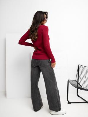 Vínová halenka s dlouhým rukávem a drobnou výšivkou