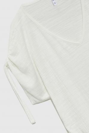 Model na obrázku: výška - 173 cm, rozměry 82/63/92, velikost v Moodo - horní část-S, spodní část-S