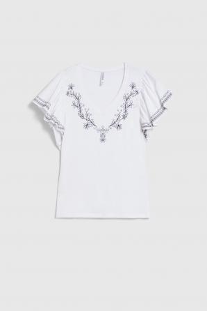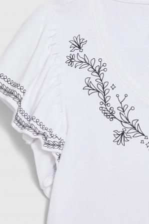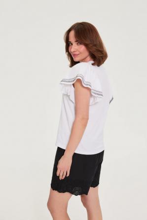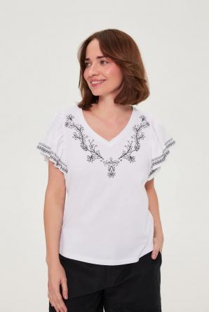 100% BAVLNA Tato klasická bílá halenka je základním doplňkem šatníku a kombinuje ženský střih s každodenním pohodlím. Měkká, příjemná bavlněná tkanina zajišťuje celodenní pohodlí, zatímco jemné volány a decentní potisk dodávají halence charakter bez přehnaných ozdob. Přiléhavý výstřih do V krásně zdůrazňuje postavu a zároveň zachovává přirozený uvolněný střih a volnost pohybu. Ideální pro mnoho příležitostí – ideální do práce, na schůzku s přáteli nebo na procházku po městě. Krásně se hodí k džínům, elegantním kalhotám nebo rovné sukni. Tato halenka je módní ležérní volbou, kterou lze snadno zkombinovat se sakem nebo kardiganem a vytvořit tak ležérní nebo elegantní vzhled. Všestrannost, pohodlí a ženský nádech – to vše v jednom nadčasovém designu.