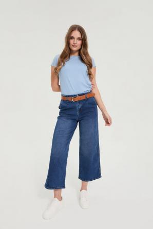 95% BAVLNA, 5% ELASTAN Tato světle modrá halenka s krátkým rukávem je ztělesněním každodenního pohodlí a decentního stylu. Jemná bavlněná tkanina je hebká na dotek a zajišťuje volnost pohybu po celý den. Kulatý výstřih zdůrazňuje ženskou povahu střihu, zatímco všestranný odstín modré vnáší do vašeho šatníku osvěžující lehkost. Jednoduchý, ale rafinovaný střih je ideální jak pro dynamický den, tak pro klidné chvíle relaxace. Tato halenka je ideální do práce, na schůzky s přáteli nebo na odpolední procházku městem. Krásně se hodí k lehkým džínům, látkovým kalhotám nebo pouzdrové sukni. Lze ji zkombinovat s lehkým sakem pro elegantní nádech nebo ji nosit samostatně pro ležérní vzhled. Tento kousek je určen ženám, které si cení módního stylu, pohodlí a přirozeného, ??ženského každodenního stylu.