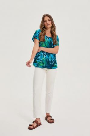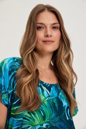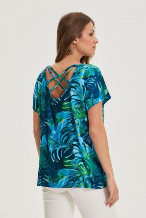 Modrá halenka s rostlinným vzorem