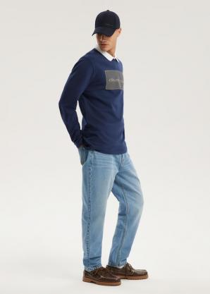 Tričko s dlouhým rukávem s nápisem v tmavě modré barvě - běžný střih